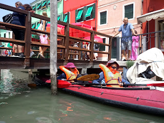 Teh nekaj minut visoke napetosti se je poleglo v novih samotnih ulicah, pa kasnejši kavi, pivu, prigrizku na Beneški način in počasi je dan tekel dalje. Vse dokler nismo zapustili mesta, se zopet borili z valovi in neštetimi skritimi tokovi prevelikega števila ladij, gliserjev in nedeljskega popoldanskega živžava, in za finale dneva naštepali še ne malo kilometrov nazaj do izhodišča.